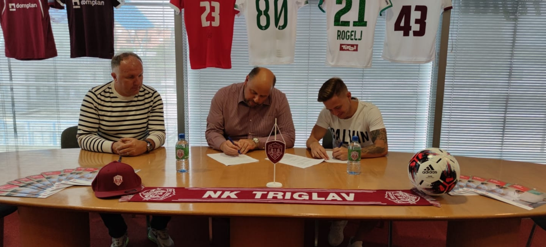 Na fotografiji: Matic Kopač s predsednikom Nogometnega kluba Triglav Kranj Franjem Radikovičem ter s svojim zastopnikom Robertom Marušičem.